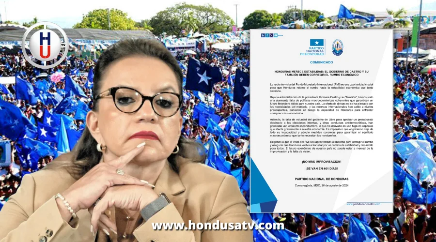 El Partido Nacional urgió al gobierno a dejar de lado lo que consideran una gestión incapaz y a tomar medidas concretas que garanticen el equilibrio macroeconómico que necesita el país. Destacaron la importancia de aprovechar la visita del FMI para corregir el rumbo económico de Honduras y aseguraron que el futuro financiero de la nación no puede quedar a merced de lo que calificaron como improvisación y falta de visión.