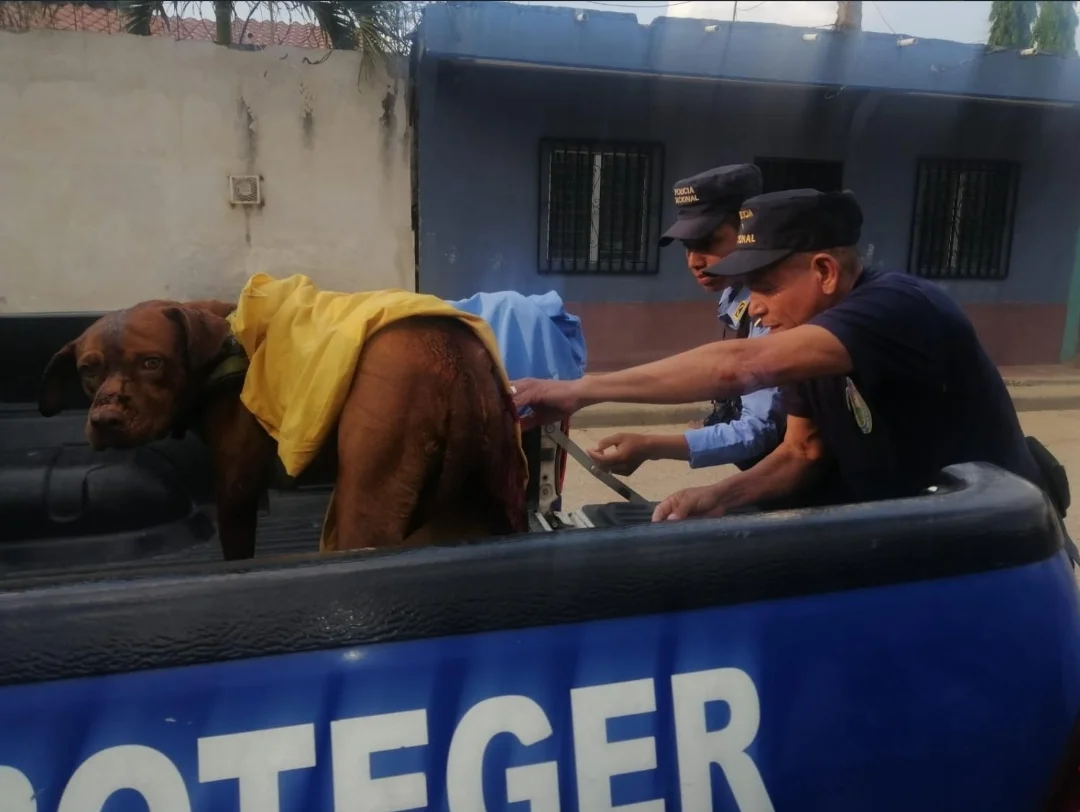 Policías hondureños rescatan y auxilian a perrito con heridas de arma blanca en su cuerpo