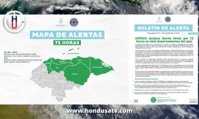 Tegucigalpa.- La Secretaría de Gestión de Riesgos y Contingencias Nacionales (Copeco) emitió Alerta Verde por un plazo de 72 horas en el Caribe, zona norte y...